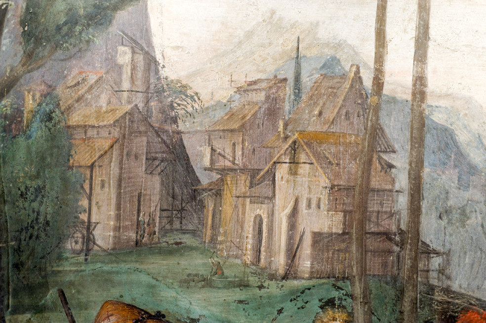 L'incontro tra Valeriano e Papa Urbano avviene in aperta campagna. È una giornata di sole che proietta le ombre delle persone sui prati coperti da una erba rasata. Sullo sfondo, in alto a destra, si vede un imponente portone forse di un palazzo o la porta di una città. Da quella porta è uscito Valeriano che vediamo, in secondo piano mentre chiede a due viandanti la strada da seguire per raggiungere il Santo Papa. Per individuare Valeriano che parla con i viandanti partire dal portone e seguire il profilo della collina. Si incontrerà un albero e poi una figura a cavallo che parla con due persone a piedi.