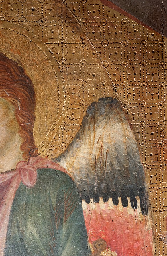 Il gesto della sua destra piuttosto che atto tradizionale di preghiera sembra invito ad adorare il bambino; e dal suo sguardo traluce il sorriso (P. Toesca, il medioevo p. 1042)