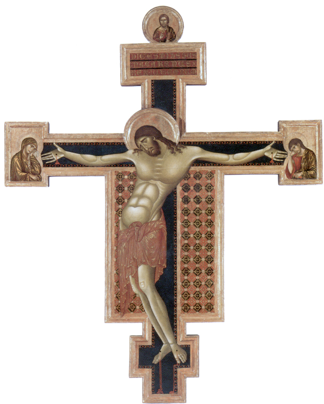 Agli inizi del XIII secolo la pittura testimonia un cambio, quasi repentino, nella effige del Cristo crocifisso. L'immagine di un Cristo regale, che apre le braccia sulla croce indifferente al supplizio e dalla croce parla al credente da Re e Signore dell'Universo, tende a mutare velocemente in quella che comunemente è stata identificata come la prima rappresentazione di un Cristo raffigurato morto sulla croce. Un capovolgimento di valori e iconografia che, anche per il secolo in cui avviene, estremamente legato ad un'ortodossia figurativa, non può che essere il segno di un profondo e radicale mutamento teologico sul quale però poco sappiamo. Una raffinata studiosa, come la Sandberg Vavalà, il cui testo sulla "Croce dipinta italiana", è ancora insuperato per le puntuali analisi nell'indagare le variazioni iconografiche della croce, davanti a tale mutamento non trova di meglio che pensare ad una lenta penetrazione di un modello bizantino che prende il posto, senza particolari motivazioni, dell'antica iconografia .