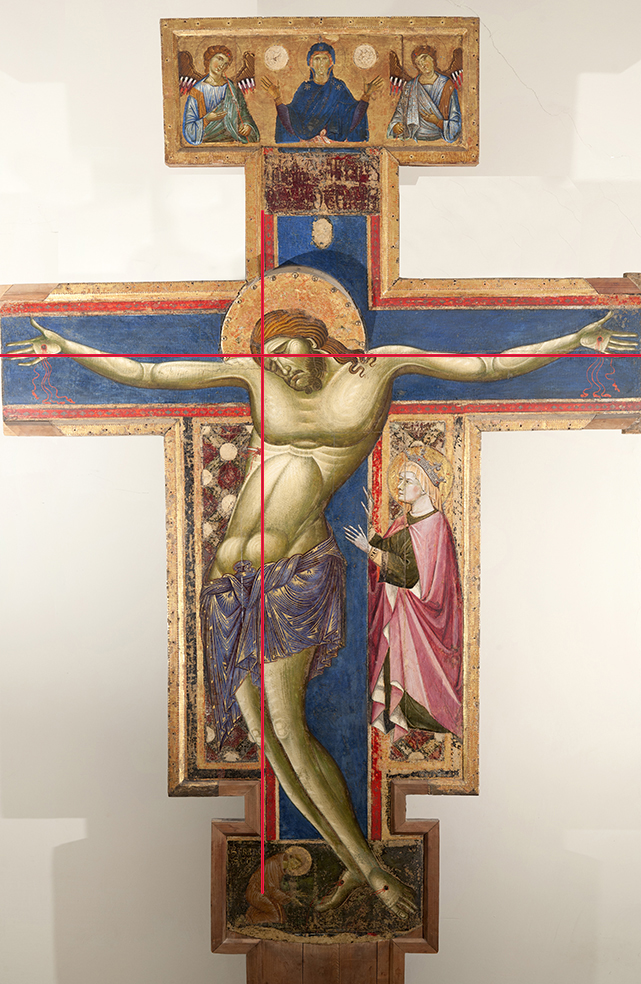 I rombi di più grandi dimensioni nell’altro crocefisso in Pinacoteca e che il maestro ripete a Faenza, seguono un altro fortunato modello che trova riscontro ancora in Giunta Pisano nella croce oggi al Museo Nazionale di Pisa.