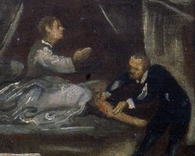 Malato a letto.Olio su tavola. Cm. 29 x 23,8. Restauro: Patrizia Camino 1995. Iscrizioni: Ex Voto.