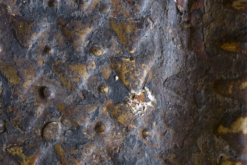 4 – strato pittorico azzurro a base di indaco e biacca. Il colore più intenso rispetto allo strato sottostante è dovuto ad una maggiore percentuale di pigmento blu.